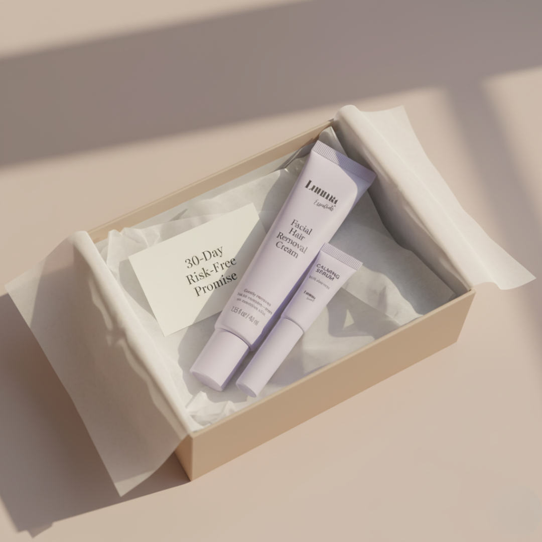Reveal smoother, radiant, and hair-free skin in just minutes with LUUMA Painless Facial Hair Removal Cream, the gentle solution designed for mature and sensitive skin.